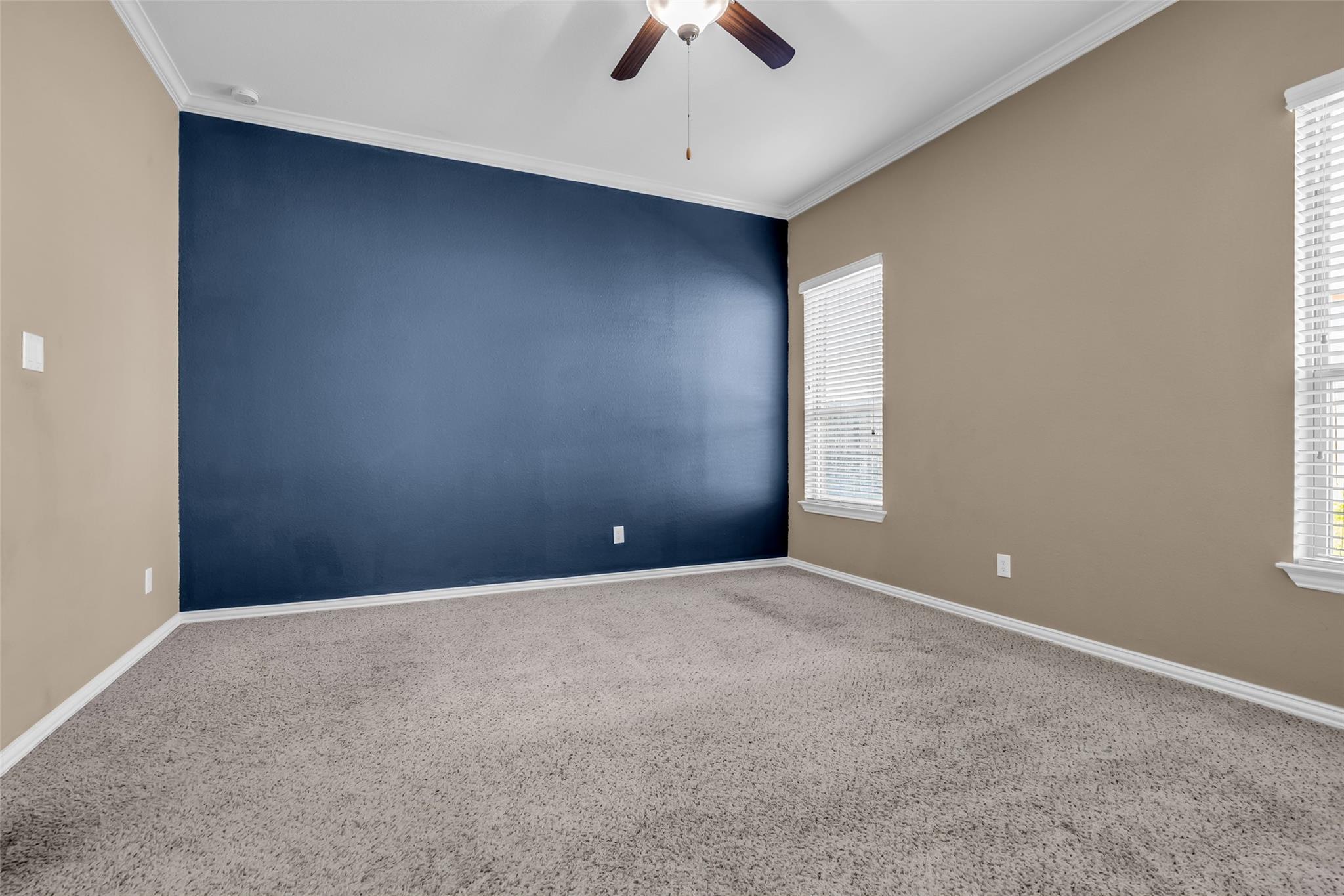 Step into a thoughtfully designed one-story home that blends comfort, style, and everyday functionality. The flexible floor plan includes a private study with elegant French doors and crown molding that adds a refined touch throughout.